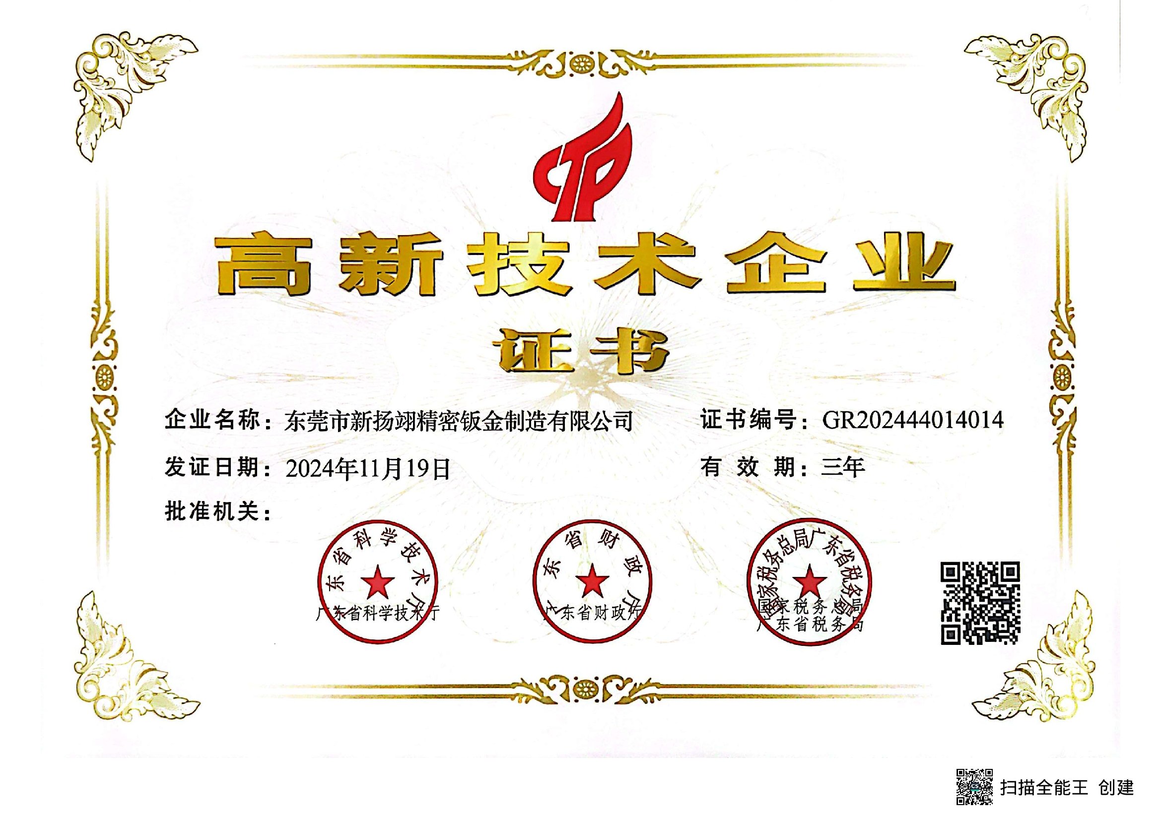 東莞市新揚翊精密鈑金制造有限公司,廠房面積約10000平方米,是一家專業鈑金生產企業。 公司擁有鈑金行業中最先進的設備:德國通快激光切割機、數控剪床、數控折彎機、數控轉塔沖孔機床等專業設備。以精密鈑金及精密機械加工為主。公司可大批量生產各類五金配件(鋁板、鐵板、201 、304、316不銹鋼板砂光、鏡鋼、彩色不銹鋼金屬制品、),精密五金零件;專業生產鈑金機箱、機柜、機架等;公司生產的產品廣泛服務于各個相關行業,如鈑金制品、五金制品、裝飾制品、家私五金、燈飾五金、自動化機械設備、制造業等。